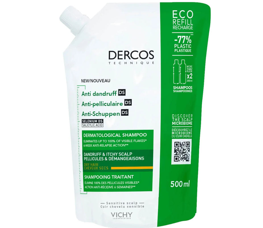 Vichy Dercos DS szampon przeciwłupieżowy to unikalny kosmetyk zaprojektowany z myślą o osobach zmagających się z problemem łupieżu. Polecany jest szczególnie w przypadku łupieżu uporczywego i nawracającego. Szampon do włosów suchych Vichy Dercos DS doskonale oczyszcza włosy i skórę głowy, wspiera równowagę mikrobiomu skóry i skutecznie eliminuje łupież. Ponadto redukuje nieprzyjemny świąd i poprawia komfort. Vichy szampon przeciwłupieżowy swoje właściwości opiera na wyjątkowej formule obejmującej dwusiarczek selenu i kwas salicylowy.